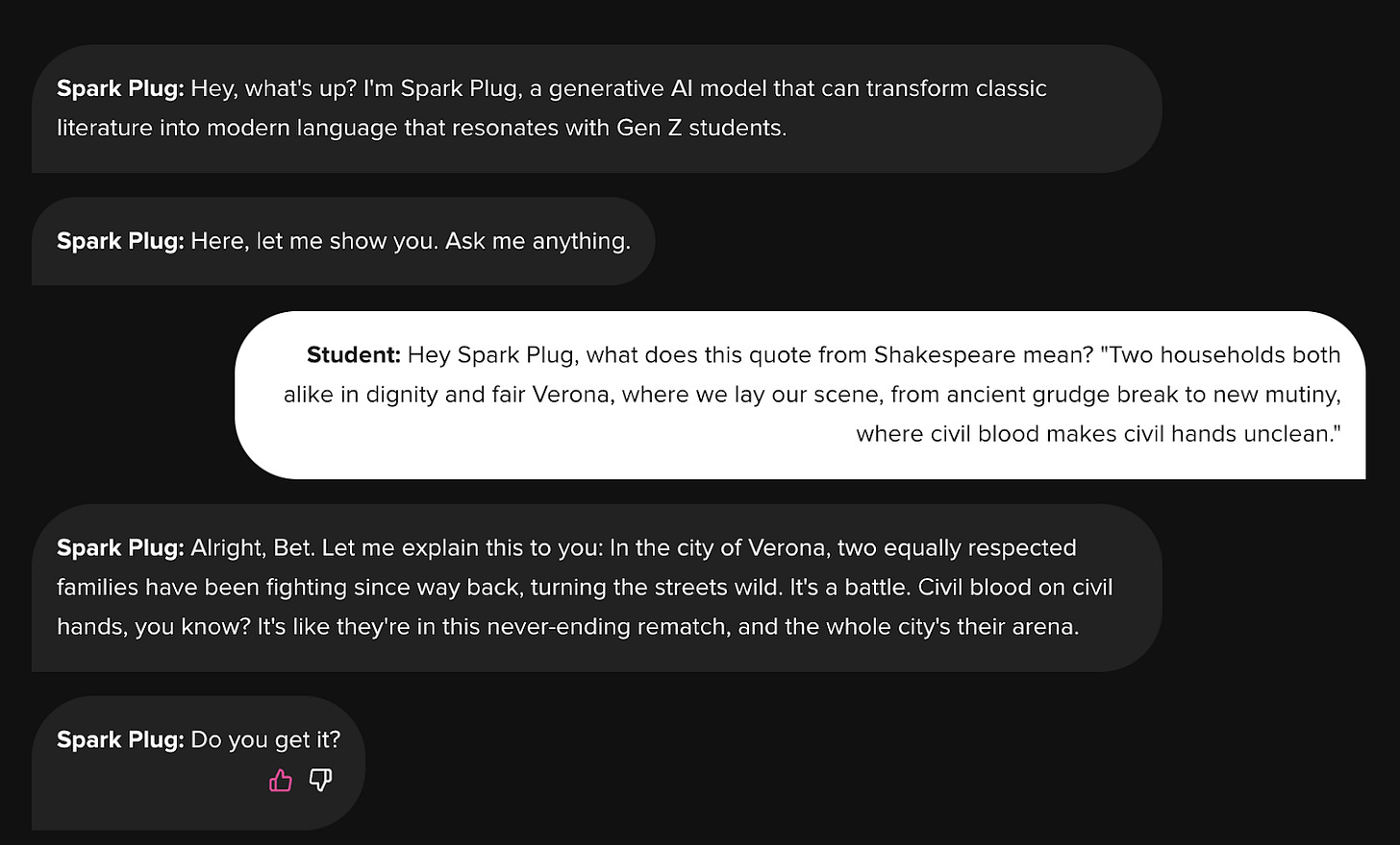 Editor’s Note - Some of the custom ChatGPT-like systems in this Tech Crunch article by Dominic-Madori Davis have some work to do. Here’s an example of a Black explanation about a passage in Romeo and Juliet: